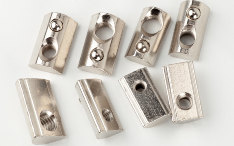- Con trượt lẫy (Spring Loaded T-Nuts): Giữ chặt vị trí sau khi được đặt vào rãnh.